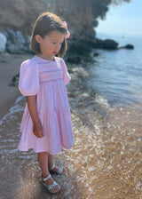 MARGARET GRAHAM DRESS DOLLY PINK SEERSUCKER WITH PURPLE RAIN HAND SMOCKING
